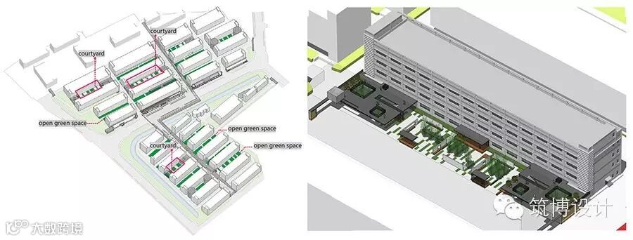 建筑间的空间以打破园区布局上兵营式的空间组织。绿化空间的设计旨在创造更多适合当地气候的,可供四季停留休闲的室外,半室外空间。