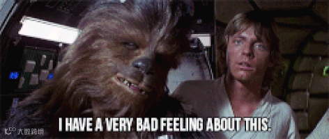 要说人气梗,很多人都知道那句「我是你爸爸」,但其实星战系列里更好玩的台词是/I have a bad feeling about this./以及各类变种台词。基本上,说完这句台词的角色,会很快遭遇不测。所以,「不详预感」也成了星战系列电影里的王牌flag。其人气程度,远超「我是你爸爸」。遇到星战迷,来上一句/I have a bad feeling/,然后会心一笑……你就可以拿下TA了。