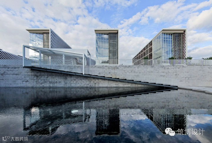 利用地块和周边的关系生成了与环境穿插和谐的建筑体量,丰富的地景景观和第二地坪相结合,形成了丰富的总图景观环境。建筑设计尝试去展示总部文化纯理性的思维过程,白色派的建筑风格在理性中又透着简约和雅致。