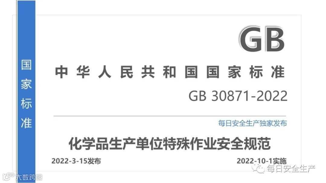 近日,国家市场监督管理总局(国家标准化管理委员会)发布公告,批准发布《危险化学品企业特殊作业安全规范》(GB 30871-2022)。作为国家强制性标准,新规范将于2022年10月1日起正式实施,代替当前现行的《化学品生产单位特殊作业安全规范》(GB 30871-2014)。