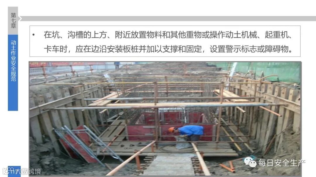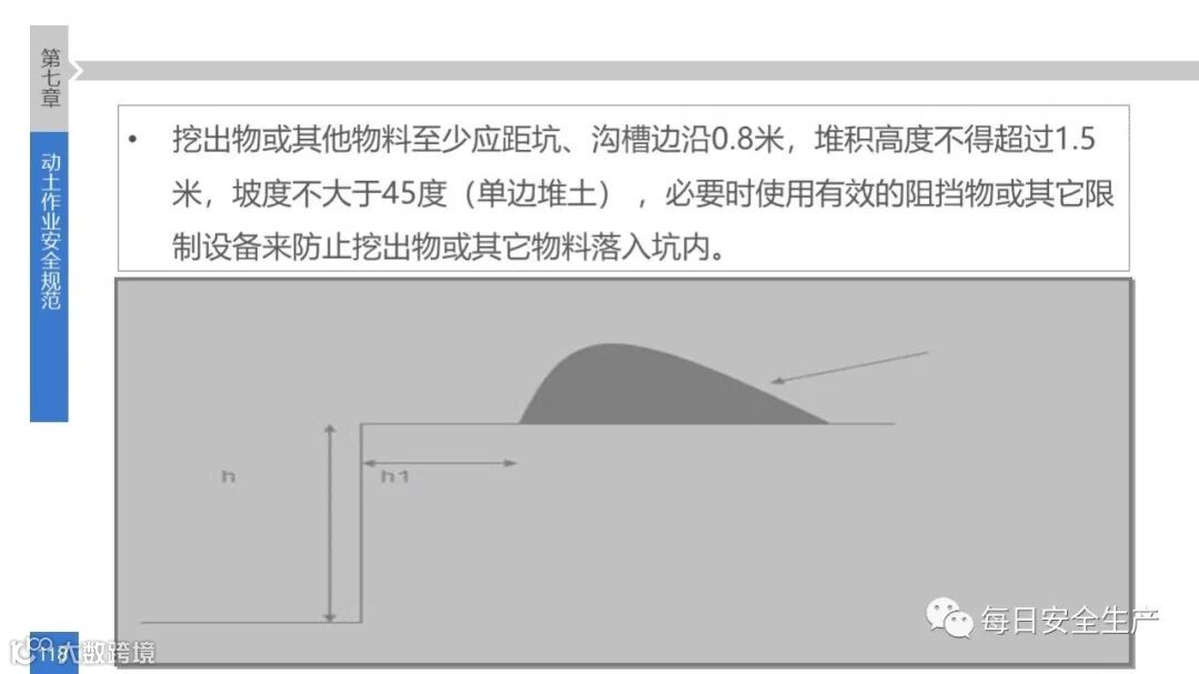——调整了挖出的泥土应堆放在距坑、槽、井、沟边沿至少 1m 处,堆土高度不得大于 1.5m。