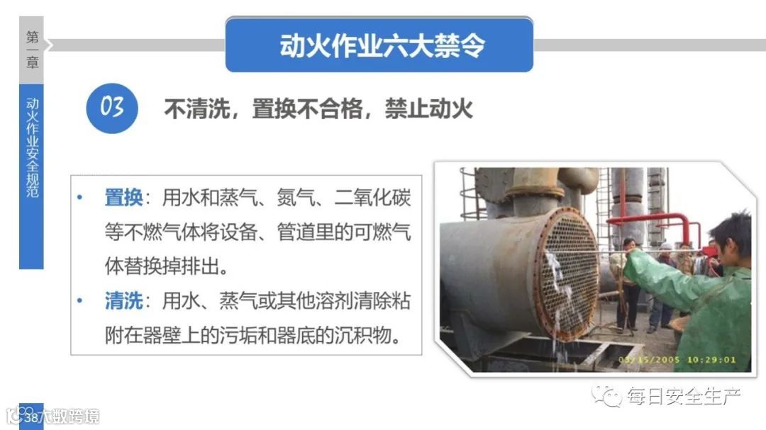 ——修正了特级动火的划分范围,将“在运行状态下的火灾爆炸危险场所生产装置设备、管道、 储 罐、容器等部位上进行的动火作业(包括带压不置换动火作业);运行中的重大危险源罐区防火堤内 动火作业”划为特级动火,进一步明确了动火作业中应采取的隔离易燃、可燃介质的安全措施。