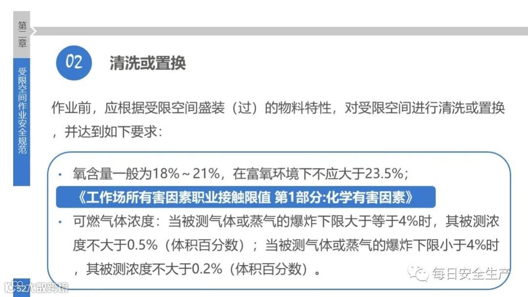 ——调整了受限空间作业氧气浓度氧含量为 19.5%~21%的要求。