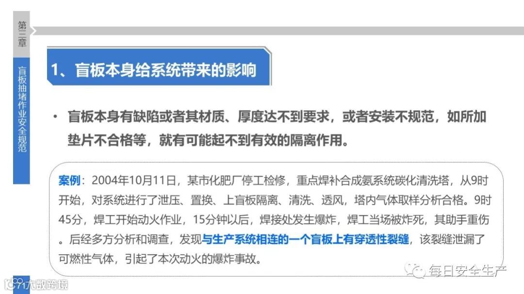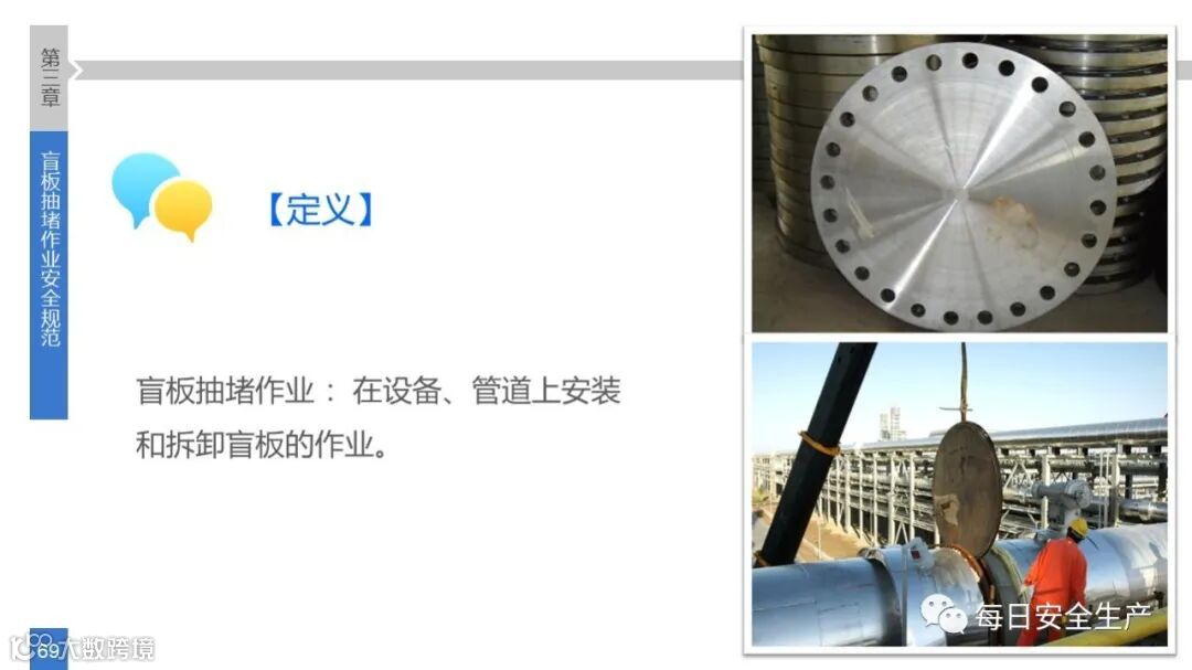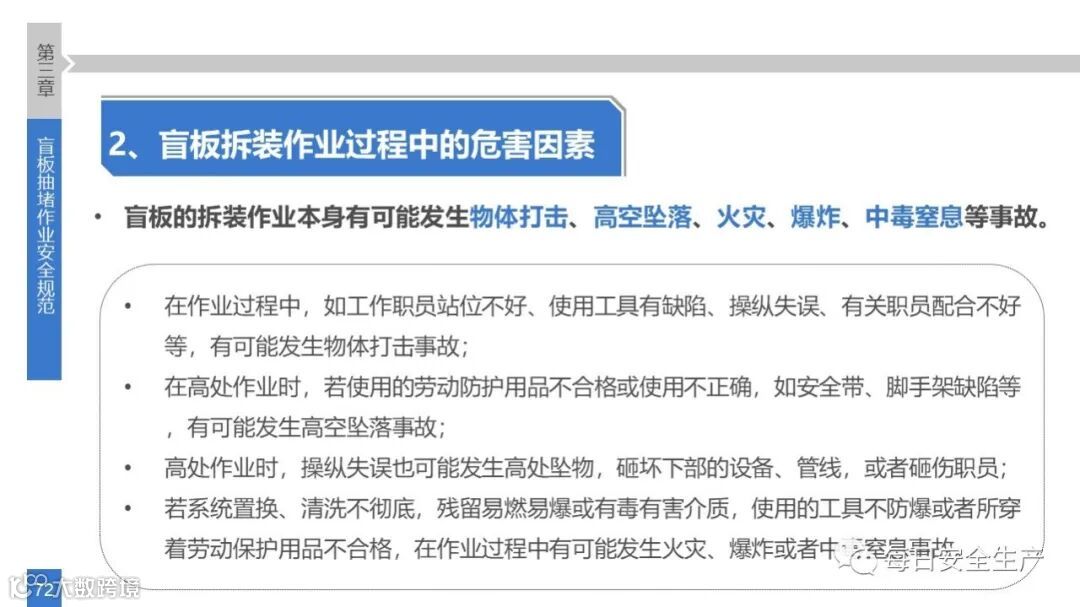 ——盲板抽堵作业方面,同一盲板的抽、堵作业,应分别办理盲板抽、堵作业票(证)。一张作业票只能进行一块盲板的一个作业。