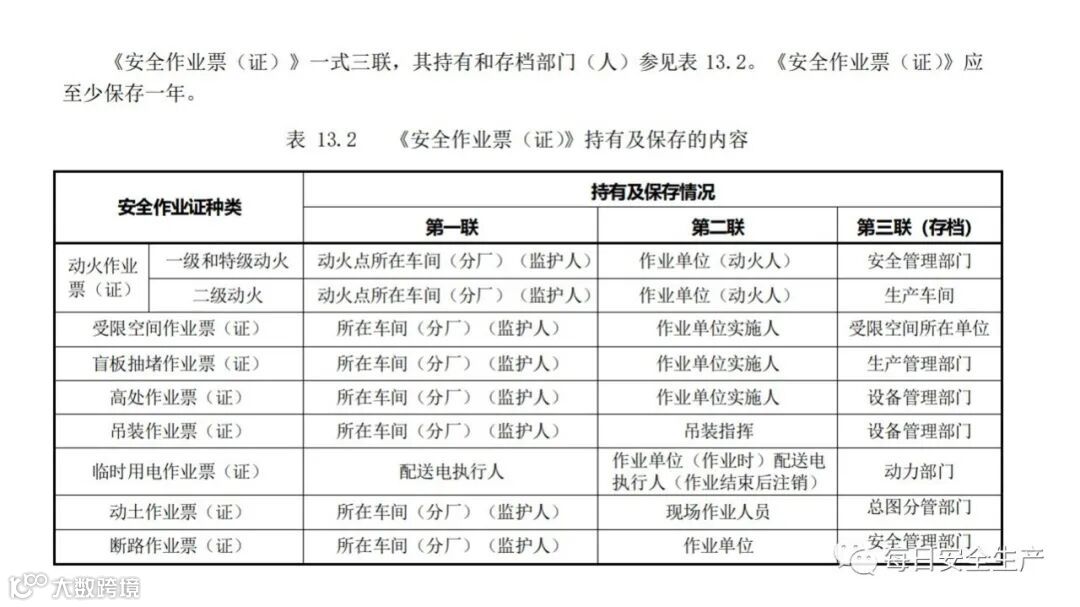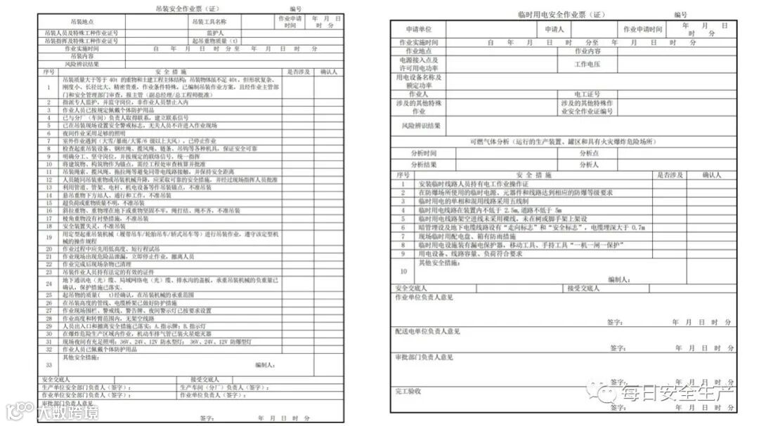 ——修改了作业票证的样式,增加了完工确认的内容明确了动火作业票证中各项工作的时间要求。吊装作业方面,调整了吊装作业的办票等管理要求。