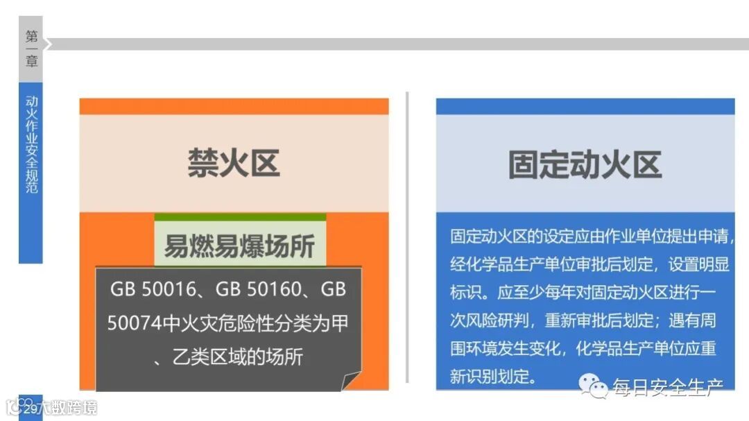 ——固定动火区管理方面,增加了对规定动火区风险识别的要求,可燃有毒气体报警仪的要求等。
