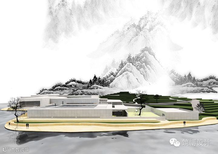总体建筑规划布局以曲线与直线交织的方式呈现,试图通过简约的设计手段和传统造园的理念,投射出空间感性与理性,浪漫与逻辑的结合之美,既表达对“湘湖文化”的理解,并创造出观展人与建筑庭院、山体、水面、展品等元素之间立体、丰富的情感对话视角。