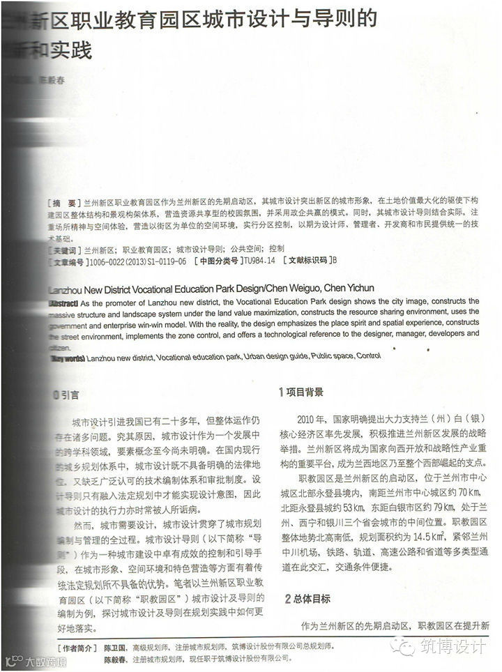 筑博设计休闲公司总规划师陈卫国、规划师陈毅春撰写的《兰州新区职业教育园区城市设计导则的创新和实践》一文,顺利通过三审,审查结论:论文思路清晰、观点鲜明、具有较强的参考价值与借鉴意义,被《规划师》(第29卷)国家核心期刊刊用。