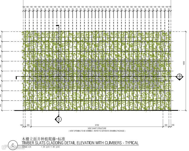 为丰富立面和景观效果,采用木栅立面并种植爬藤