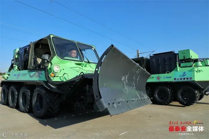 望岳讯 1月12日,在融通资源开发集团泰安基地,几台刚刚从祖国西陲“凯旋”的特殊装备静静停放。虽然寒风凛冽,却掩不住其硬朗轮廓。这正是由融通资源开发集团与泰山城建集团联手,以退役全地形车为平台,创新改装而成的我国首款边防专用除雪车。日前,它们在西北边防某哨所,成功通过了零下40℃严寒与复杂山地地形的严苛考验。