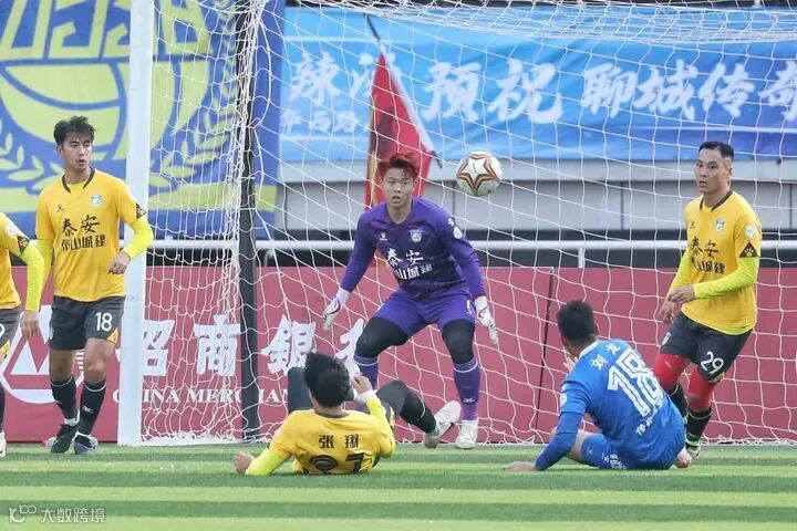 比赛第73分钟,聊城队通过角球制造威胁,严逸聪门前做出关键封挡,将球封堵出底线。