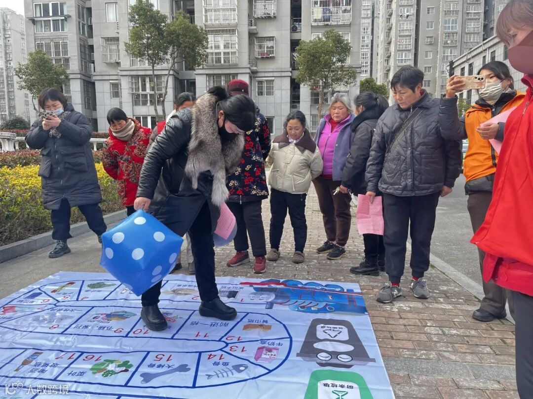 除了关爱女性员工,活动现场还热闹非凡。为了让居民更直观、更有趣地学习垃圾分类知识,现场精心设置了 “垃圾分类飞行棋” 游戏环节。一个巨大的飞行棋棋盘铺设在广场中央,瞬间吸引了众多居民驻足围观。参与者通过掷骰子决定前进步数,每走到一格,便要回答相应的垃圾分类问题,比如 “废旧电池属于什么垃圾?”“塑料饮料瓶应投放到哪个垃圾桶?” 只要回答正确,就能收获娇艳的鲜花或实用的礼品。居民们热情高涨,无论是活泼的小朋友,还是和蔼的老人,都踊跃参与其中。在游戏的欢乐氛围里,大家轻松掌握了垃圾分类的窍门,现场气氛热烈,欢声笑语此起彼伏。
