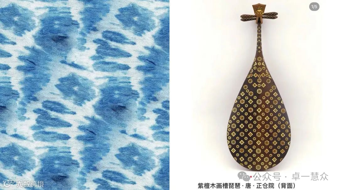 对此,壹览商业找出了网友争议中提到的LV水墨外套,霸王茶姬官方提及的大唐琵琶纹及西南扎染元素进行比对。可以看到,在排版设计方面,不管是大唐琵琶文、西南扎染又或是LV水墨外套,都可以在霸王茶姬的新包装上窥其影子,以外行人视角来说,很难界定是否算作抄袭大牌。
