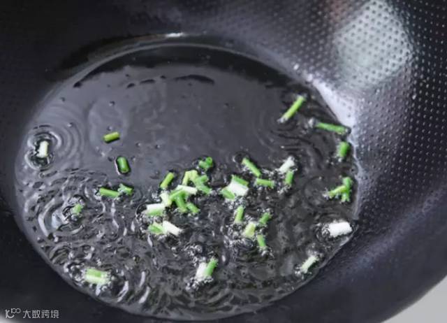 热锅入油,爆香葱段。