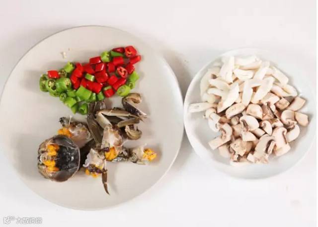【主料】鲜活阳澄湖大闸蟹数只、口蘑150克、海鲜菇100克。