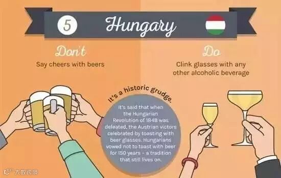 不要边喝啤酒边干杯,甚至最好都不要喝啤酒。因为在 1848 年匈牙利革命被奥地利镇压后,奥地利士兵喝啤酒庆祝,此后,匈牙利就禁止喝啤酒庆祝,这一传统延续至今。