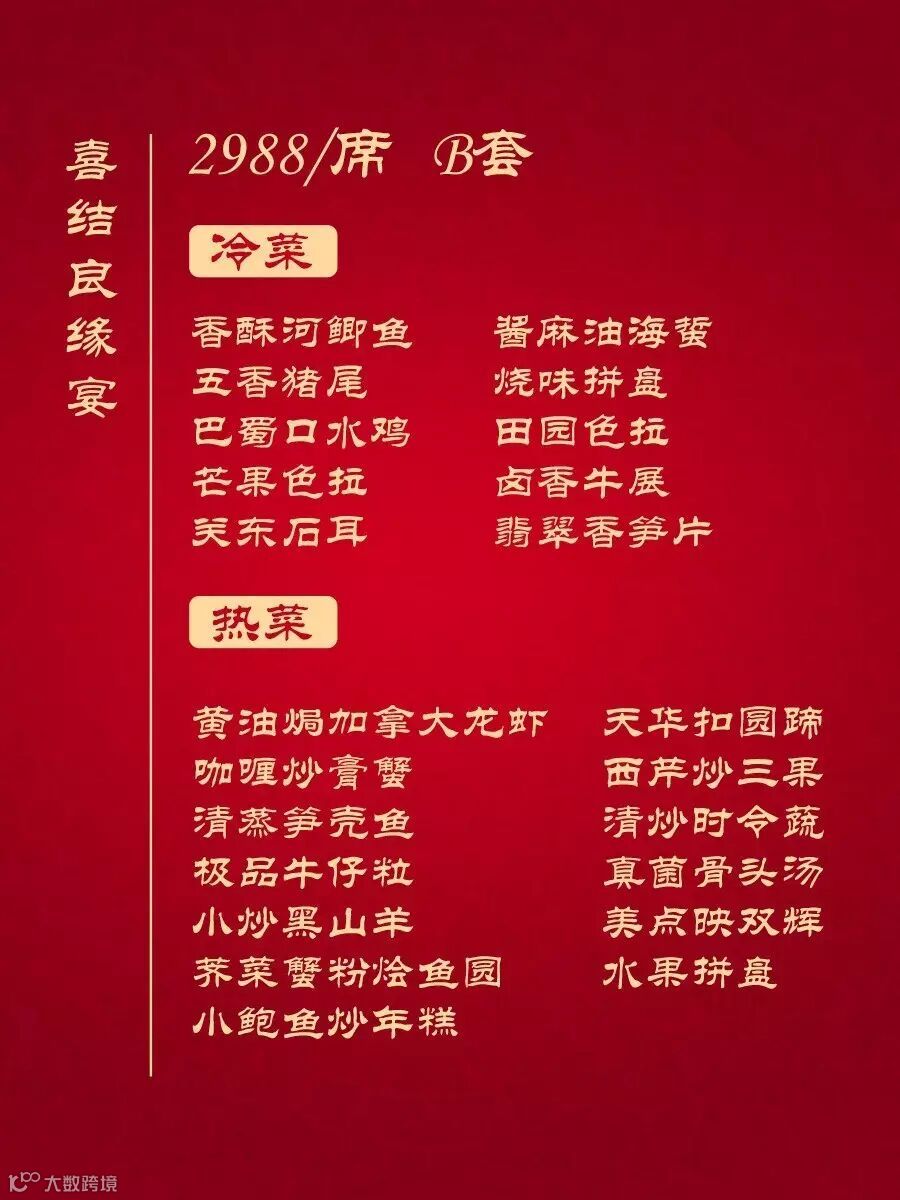 来天华(虹口店)现推出“喜结良缘宴”/“金玉良缘宴”套餐,