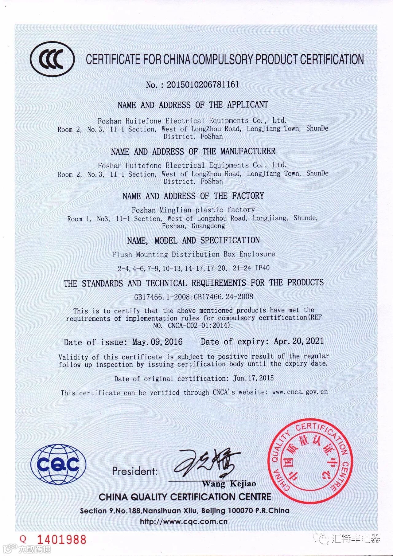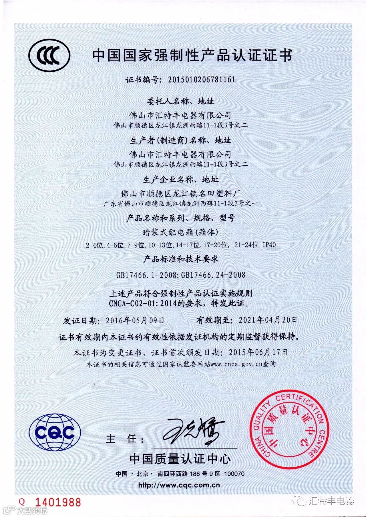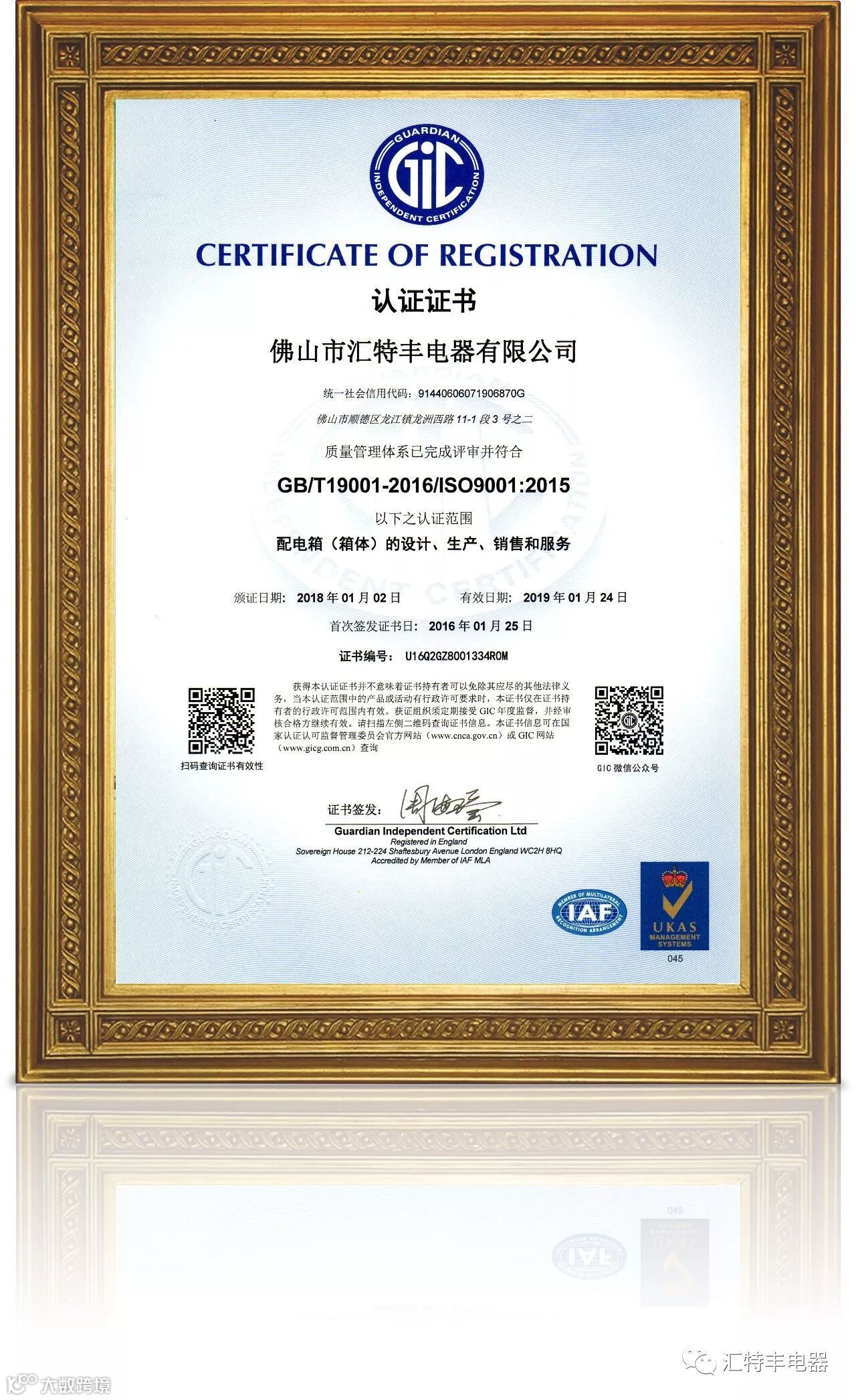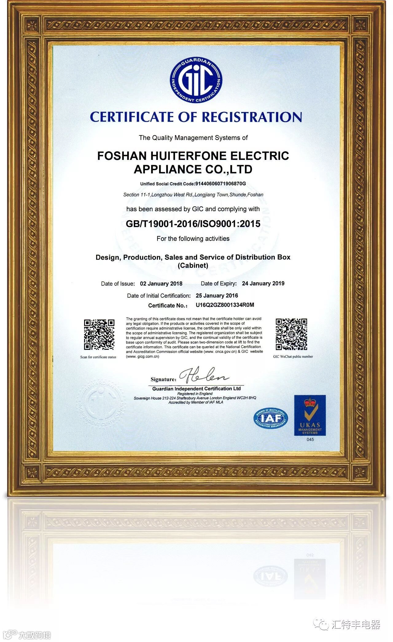 汇特丰电器十二年来产品始终坚持“质量为先,以客为本,精益求精,持续改进”依靠人才﹑技术开发新产品,严格执行ISO9001:2015标准建立质量保证体系,明确了组织架构内每一模块、岗位的权责,并制定了完善的制度、流程和管控体系。清晰的流程、高效化的管理和经验,以及多年来脚踏实地坚持不懈的努力,将百分之百的真心、细心、耐心与ISO国际标准结合,构成了能够让广大消费者信任的信赖品牌。