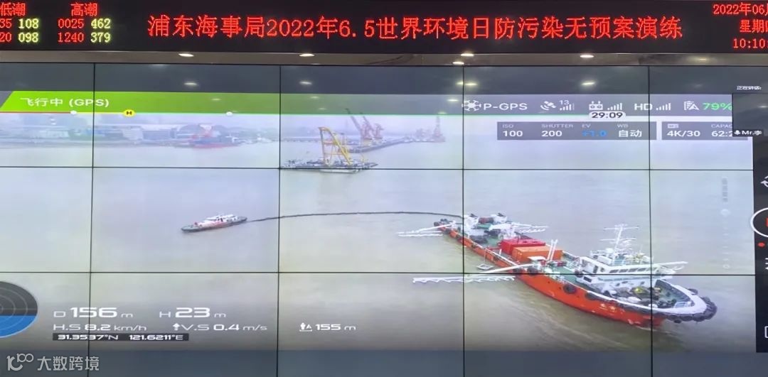 在2022年“6.5世界环境日”到来之际,浦东海事局在亿升海运(海运仓储)码头成功举办外高桥水域防污染无预案演练。