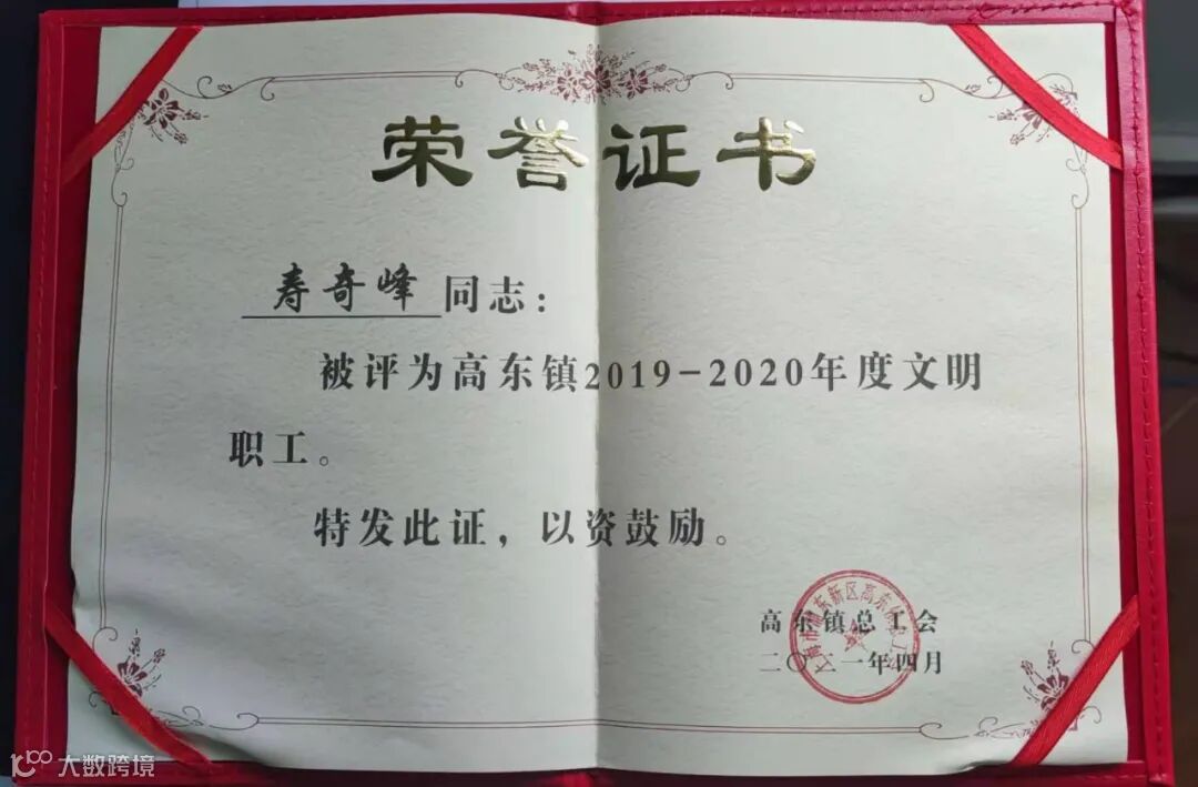 喜讯!亿升海运荣获高东镇工会先进集体、班组和个人表彰