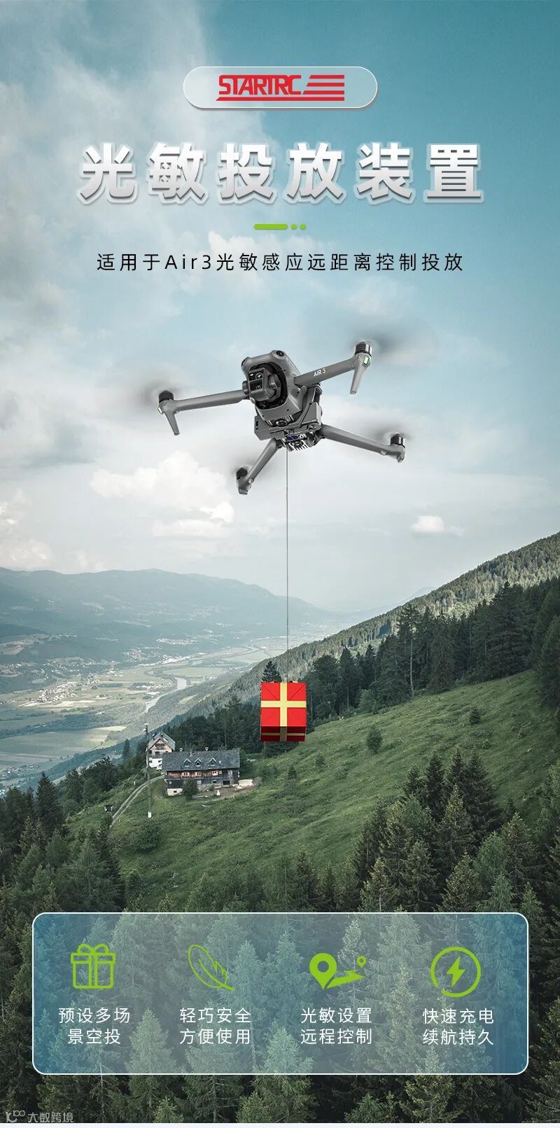 STARTRC光敏投放装置 适用于Air3 光敏感应远距离控制投放