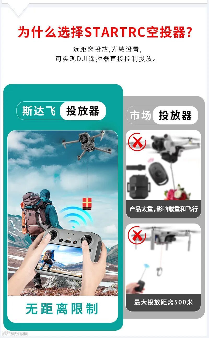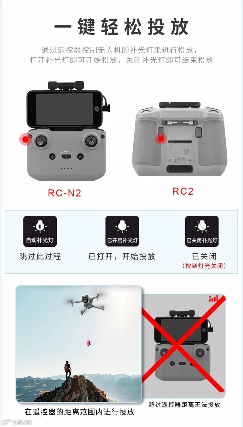 远距离投放 光敏设置 可实现DJI遥控器直接控制投放