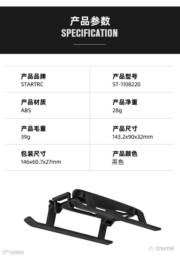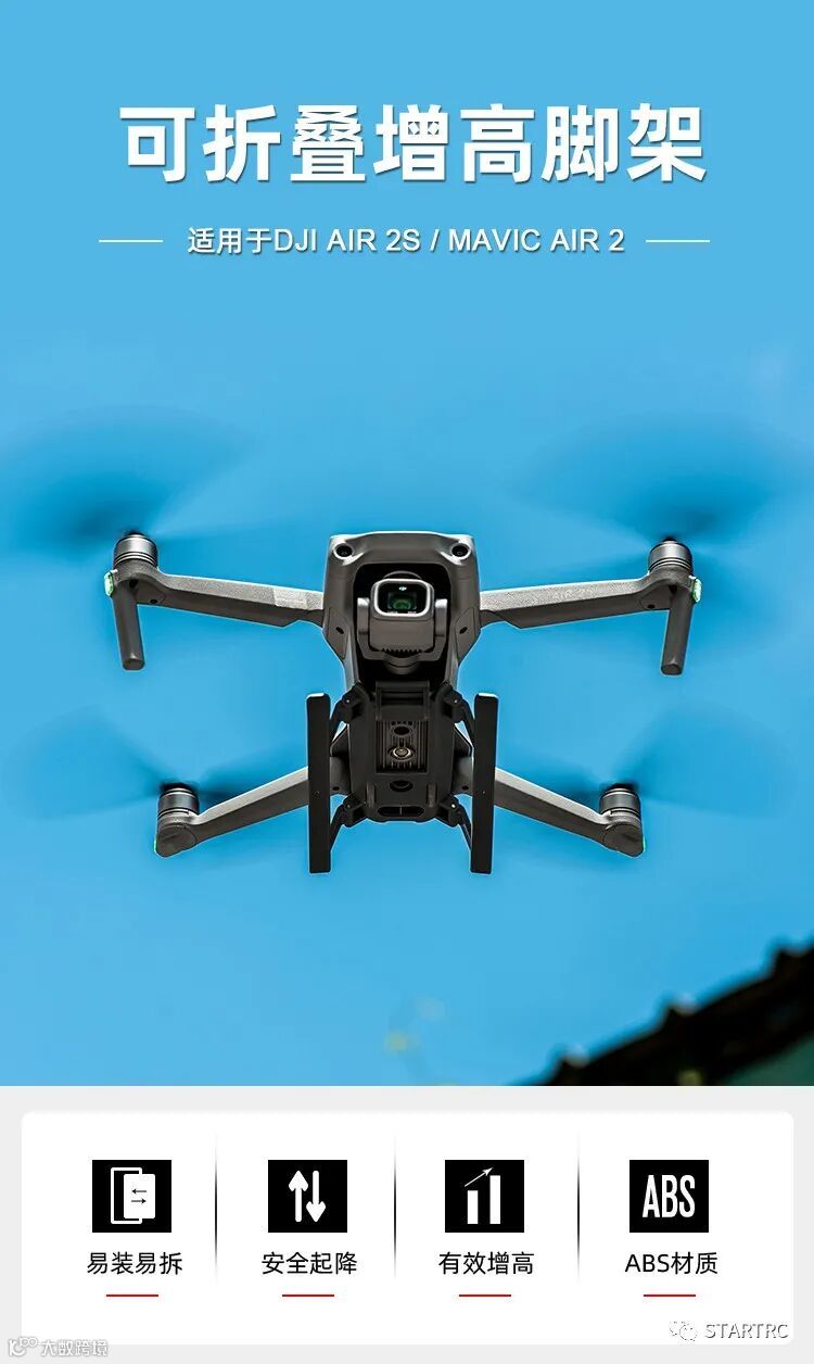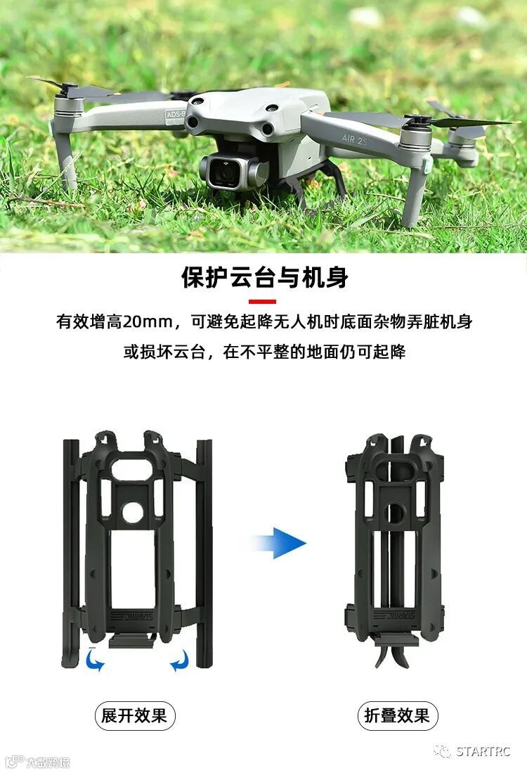 有效增高20MM,可折叠,方便收纳,避免起降期间,地面杂物弄脏机身及损坏云台