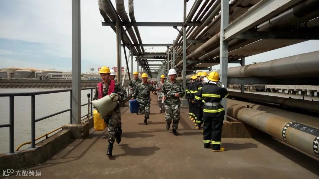 仪式后,海运仓储组织开展码头事故应急演练,水上消防支队、外高桥消防中队以及上海东安海上应急中心等联动单位参加了演练。无人机、消防车、冲锋舟以及应急作业船队从海、陆、空多维度投入到抢险中。实施紧急疏散、切断事故源头、围堵泄漏扩散、扑灭火势蔓延、开展伤员施救,“海上空中搜救排”民兵队伍与公司消警、消防队员通力合作,以最快的速度,将事故遏制于萌芽阶段,力保公司员工的生命安全、减轻了现场设施设备的损失。