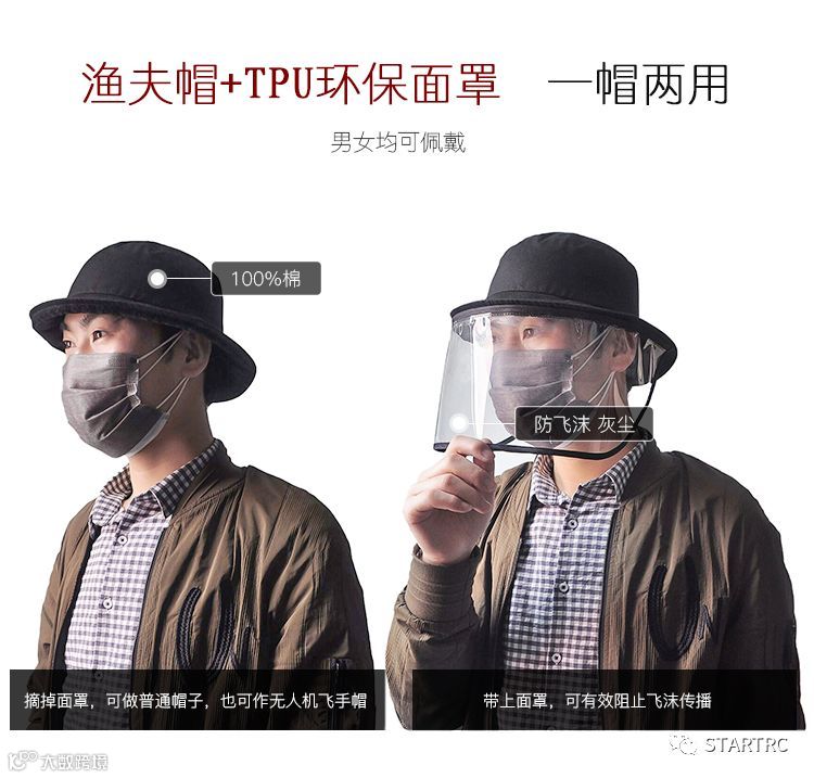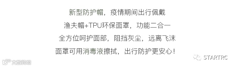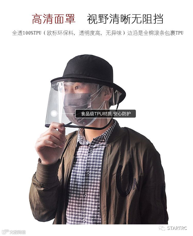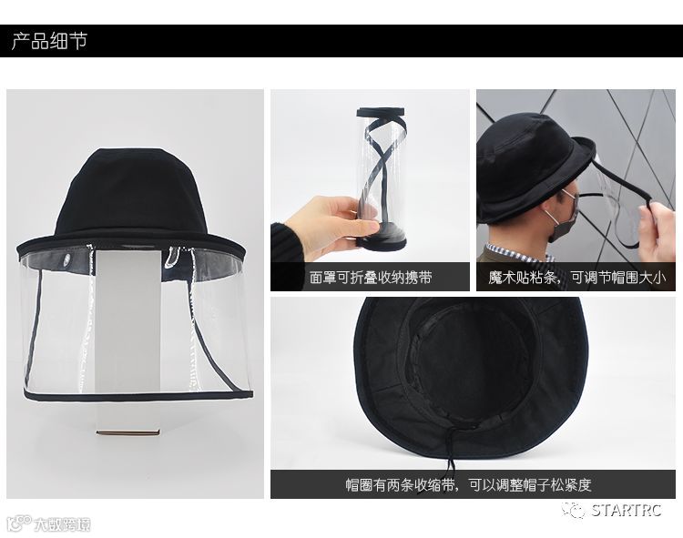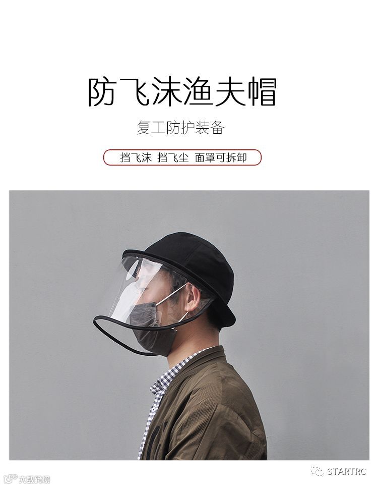 导读:STARTRC防飞沫帽子防疫外出护目帽隔离片可拆酒精消毒复工防护帽STARTRC防飞沫帽子防疫外出护目帽隔离