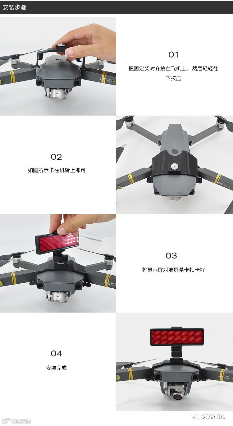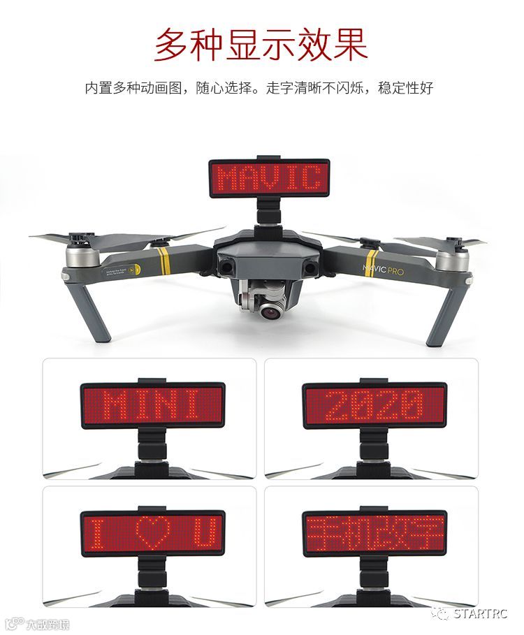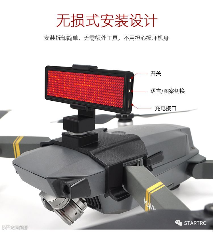 导读:STARTRC飞行巡逻指示器LED显示屏警告灯可自由编辑蓝牙表白神器适用于DJI大疆Mavic pro/ M
