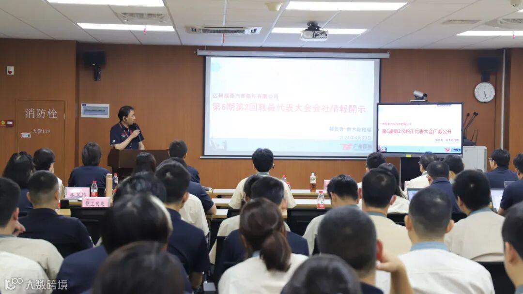 4月23日,广州樱泰工会召开第六届第二次职工代表大会。公司总经理鈴木禎信、党总支书记、副总经理王一强、工会主席邵磊、副总经理杉山克彦和职工代表共80人参会。会议由工会干事于晓洁主持。