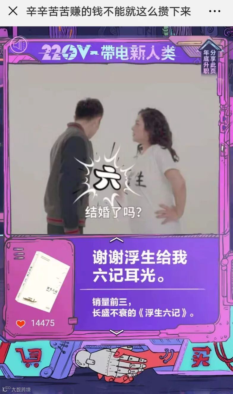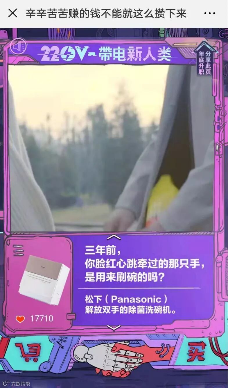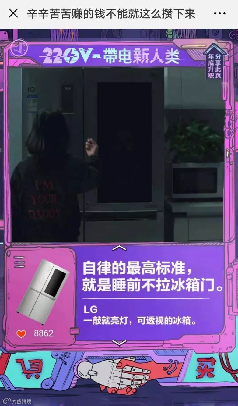点评:H5的滑动设置和动态沙雕视频,还有爱心的点赞功能,让人不禁产生一种在刷抖音的感觉。剧情无厘头,文案逗比段子频出,还富含生活的哲理,这个脑洞我是服气的。新鲜好玩有创意的广告在博得大众一笑之时,无形中增加了大众对品牌的好感度,就是不知道你有没有被电到呢?更多详情请戳“京东新广告有毒哈哈哈哈哈哈哈哈哈哈哈哈哈哈哈哈哈哈!”