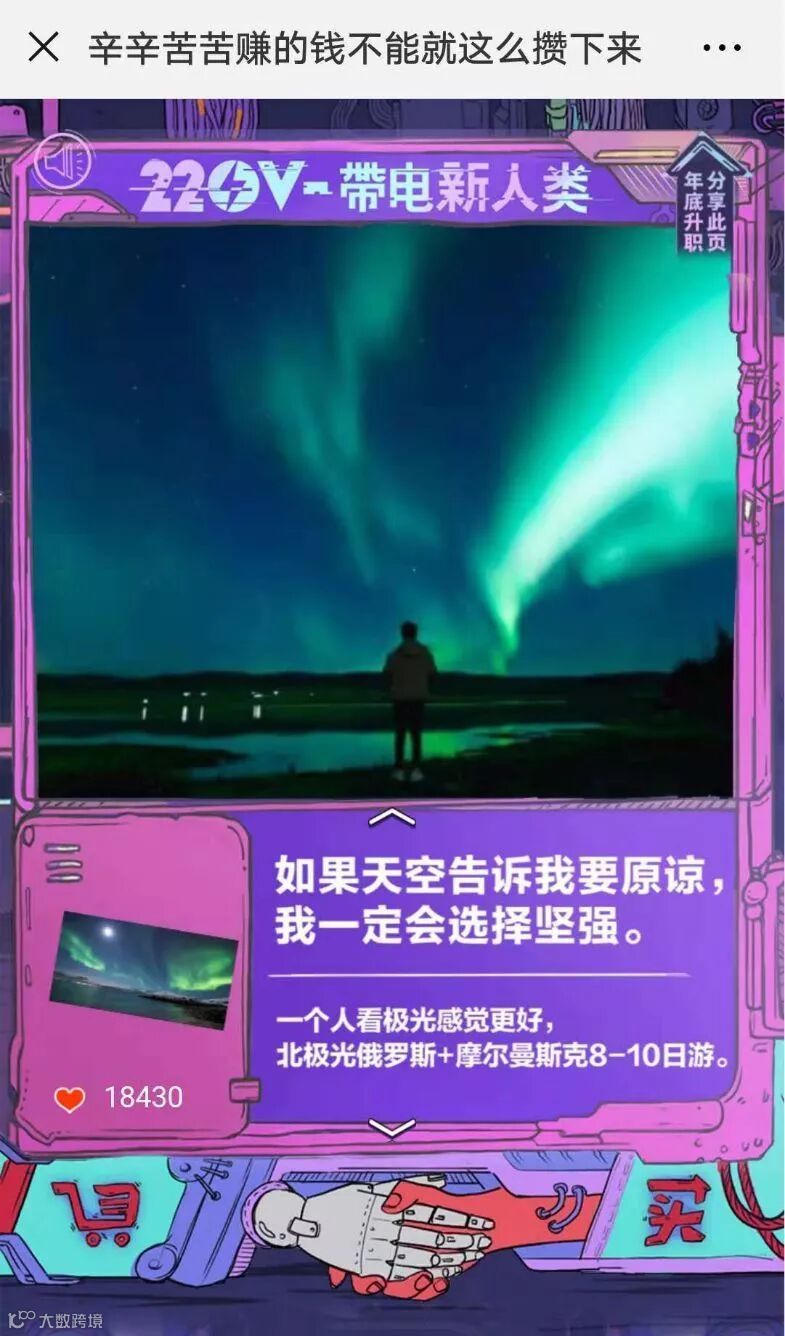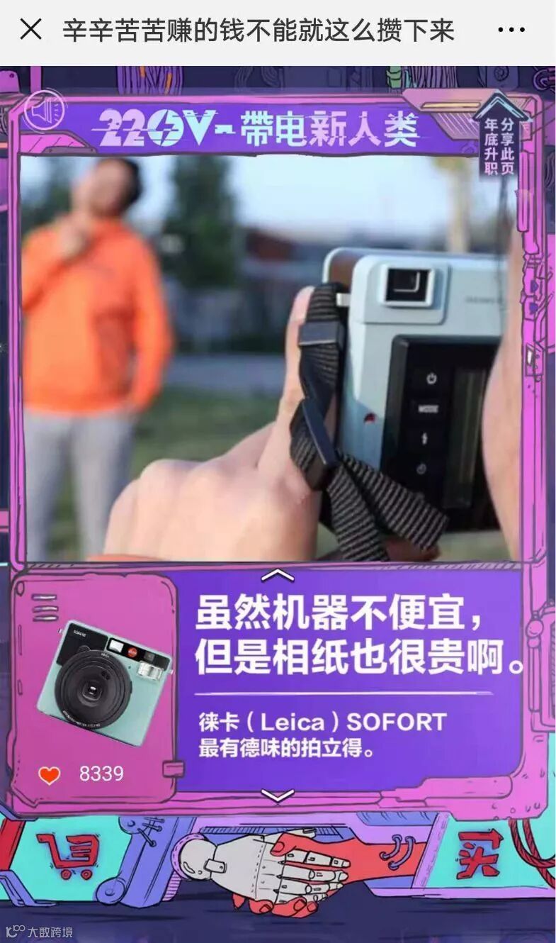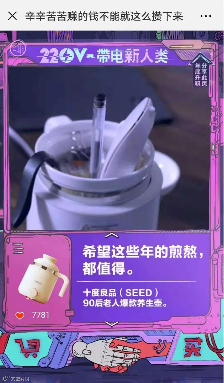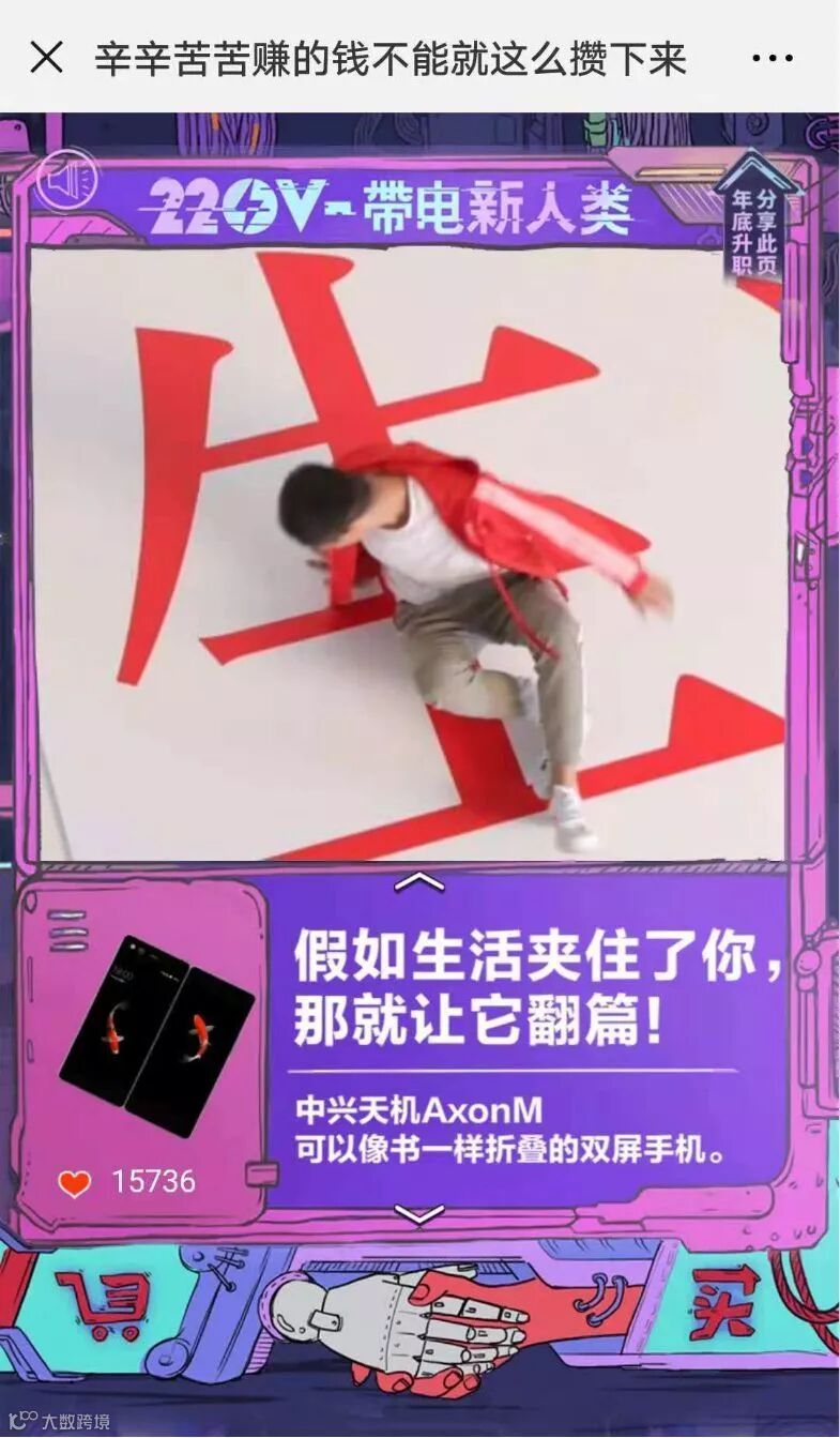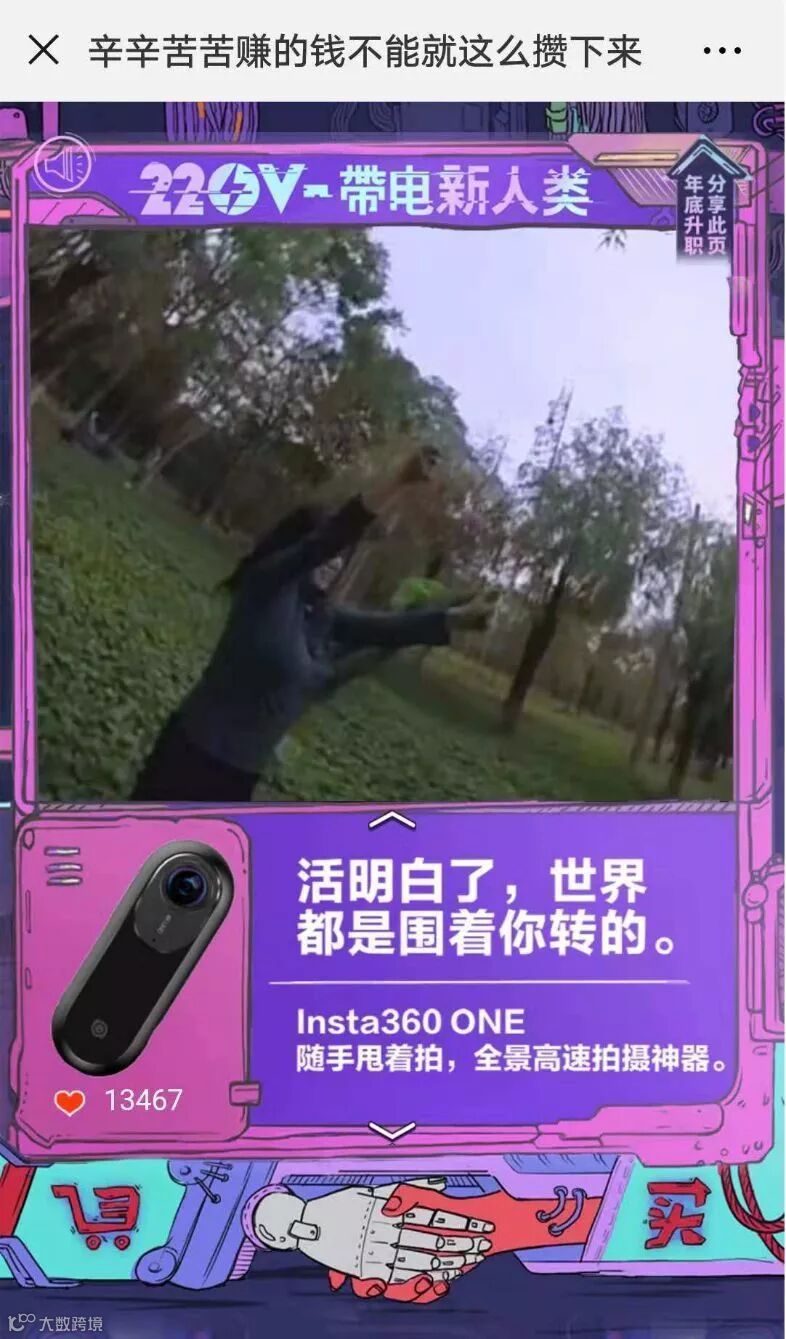 还记不记得之前京东爆火的H5《为什么中国人爱买奇怪的东西》,文案犀利有趣,是由环时互动第四事业部创作。这次,依然是由这个团队创作的沙雕H5《220V-带电新人类》。