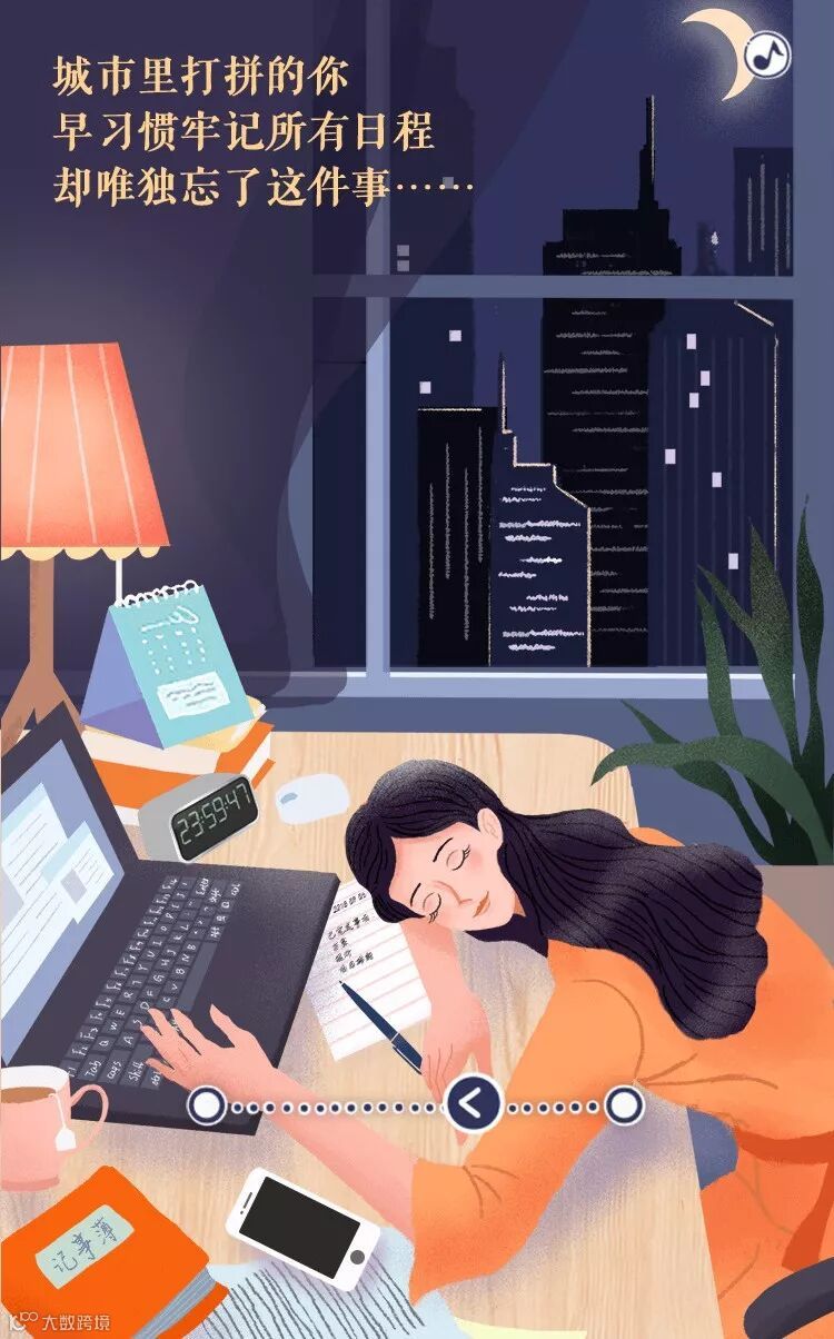 在这个“请让我照顾你”这个H5中,主人公坚持早起梳妆,保持最好的精神状态,对通勤路上拥挤的人群已经感到麻木,整日为工作劳碌以零食充饥,熬夜加班,累了只能趴在桌上歇会儿,这不正是我们的真实写照吗?