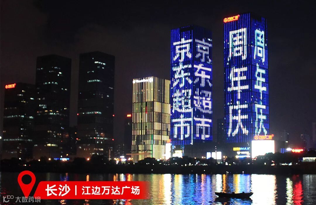 线下更是全国九城联动为京东超市庆生,在北京-世贸天阶、 杭州-国大城市广场、西安-曲江万众国际、重庆-国际金融中心、武汉-汉秀 剧场、长沙-江边万达广场、福州-广电大厦双子楼、南宁-三祺大厦广场、长春-新城吾悦广场线下为京东超市庆祝生日,打出京东超市生日快乐的字样,制造为京东超市周年庆爆灯打call的热点事件。