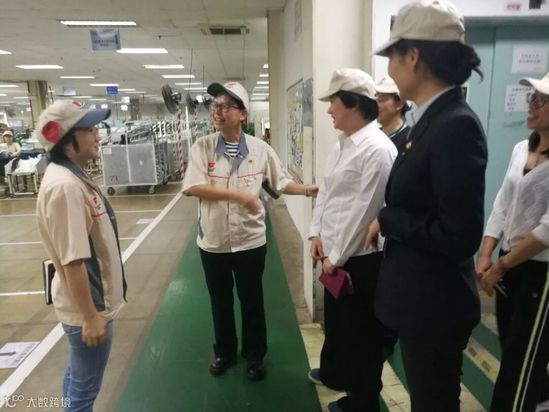 计生考核组审查公司计生管理资料和前往现场参观孕妇生产线、巾帼创新工作室和馨悦家园。