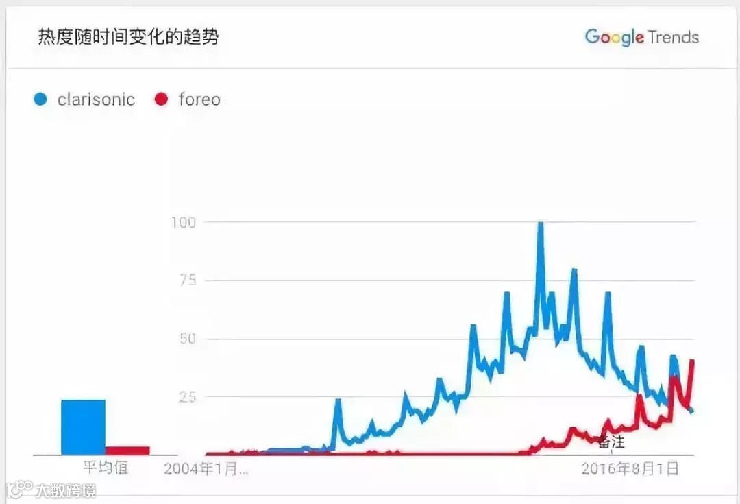 以最早的爆款品牌科莱丽为例,其热度就在不断下降。从 2014 年开始,科莱丽在全球范围内线上的搜索量一路下滑,今年年初,它在 Google 搜索中的热度被后来居上的 Foreo 超过了。