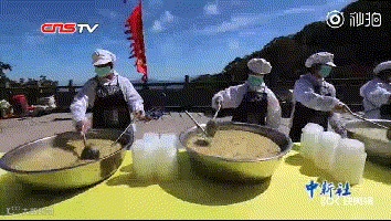 据报道,现场支着四口大锅,制作热腾腾的面条,取餐后大家可以围坐在一个大圆桌子上就餐。