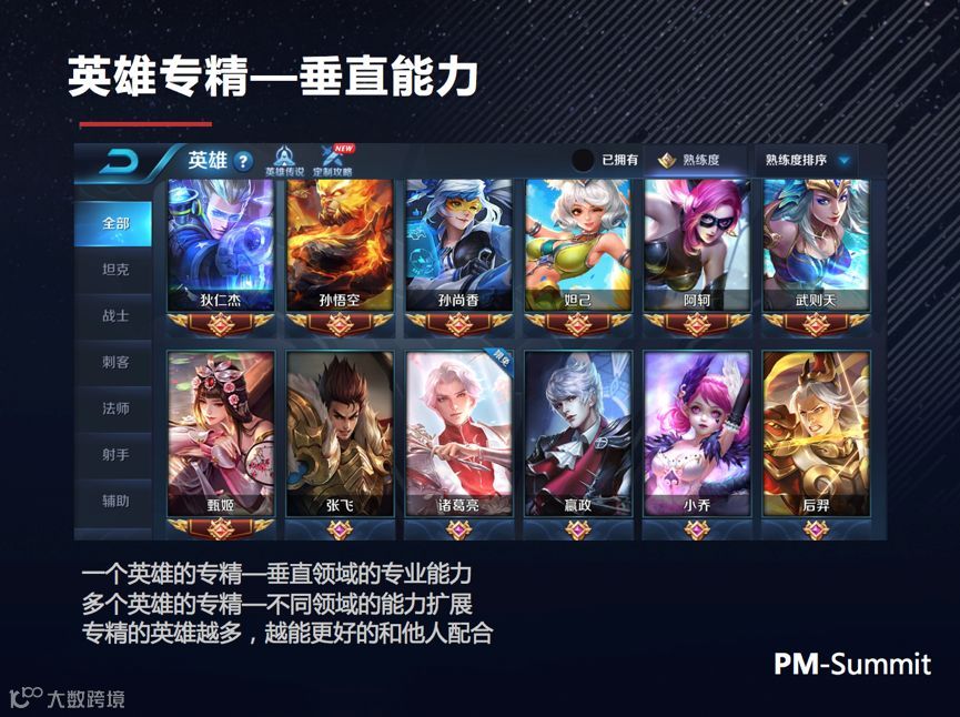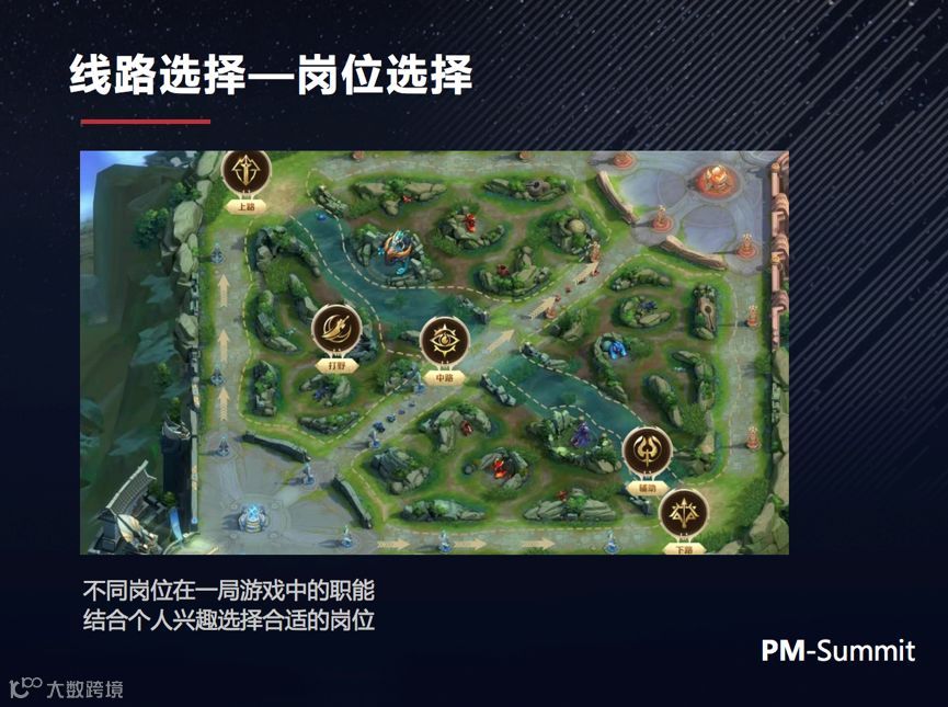 第二,选择好自己的岗位。产品的岗位和分工挺多,有专门做数据的、专门做运营的,专门做协调沟通的等等,这和《王者荣耀》游戏里面的分路很类似——游戏里大概有主要5个角色,分别是:上路、打野、中路,下路和辅助。