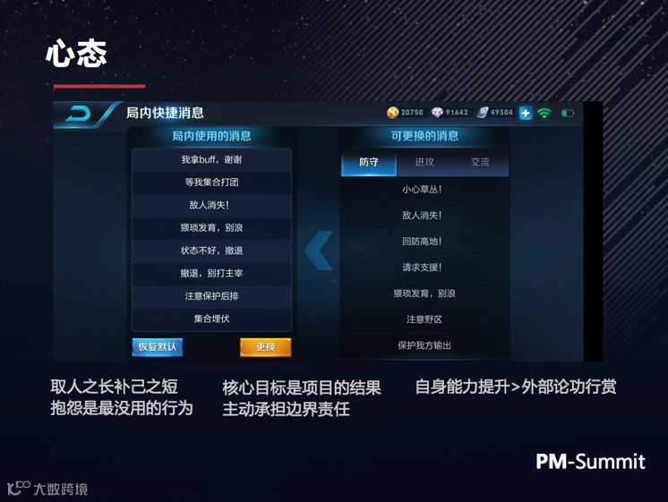 差距的形成第一要素就是心态,这里我截了一张《王者荣耀》局内快捷消息的配置图,展现了游戏中沟通的重要性。