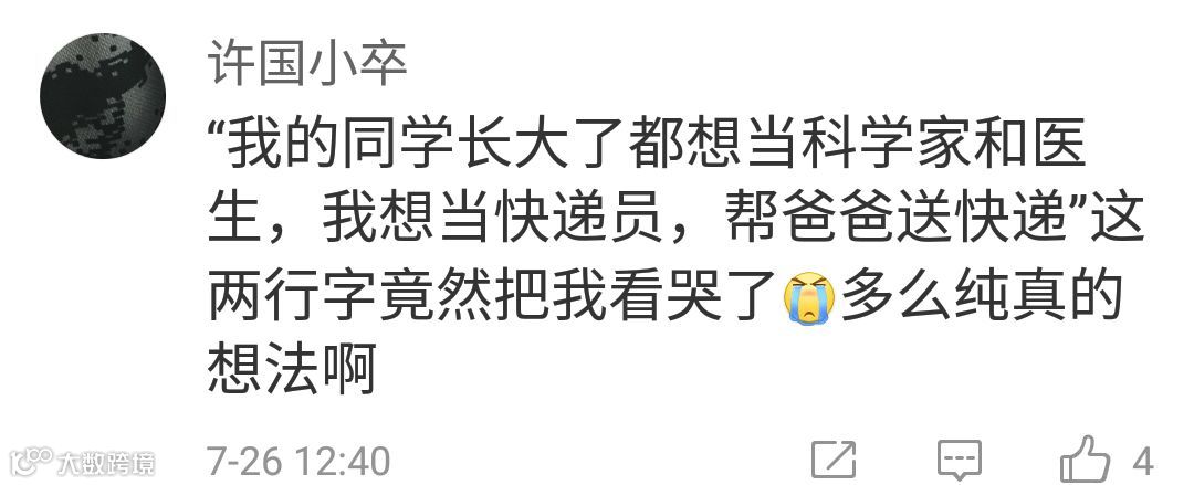 最感动小编的是一位爸爸是快递员的小朋友