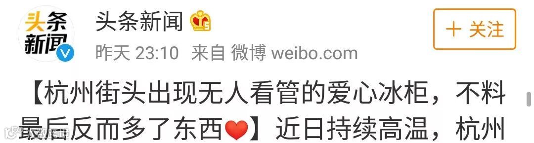 菜鸟在街头设立免费的爱心冰柜
