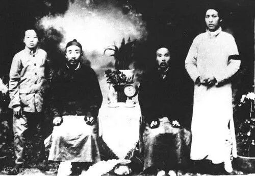 毛泽东与毛泽覃、父亲、伯父在长沙合影