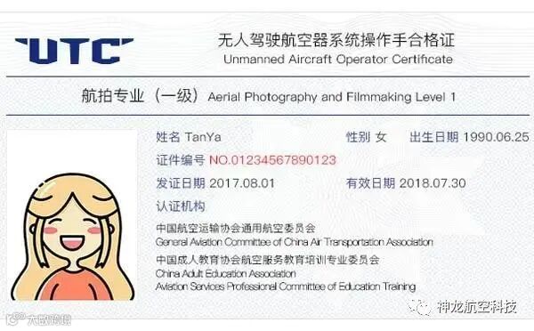 utc是大疆联合中国航空运输协会通用航空分会、中国成人教育协会联合推出的培训考证体系,在大疆等部分厂家被认可,航空器材协会认证,民航总局也认可,培训半个月后,一般都能拿到证件,但事实上仅能飞大疆。主要针对的是行业应用服务,比如航拍和植保,用的也都是大疆的飞机,所以讲课的时候总会掺杂一些产品性能的介绍,边教学边推销产品。