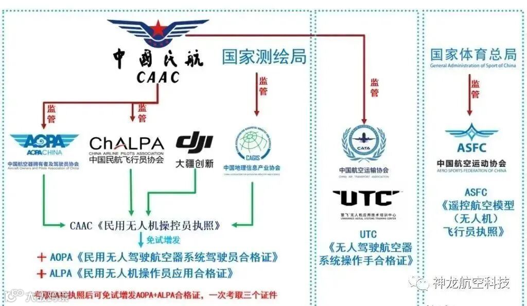 说了这么多,相信大家对无人机相关证书都有所了解了吧,如果还不清楚,那么看这张图: