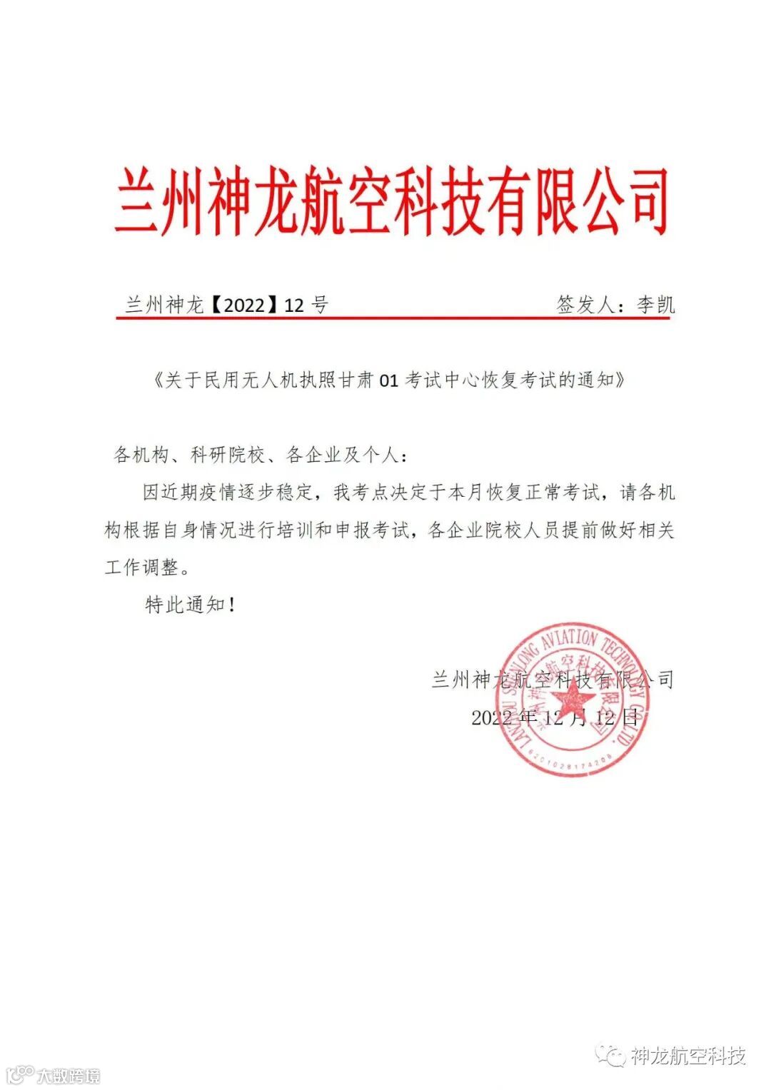 关于无人机执照甘肃01考试中心恢复考试的通知