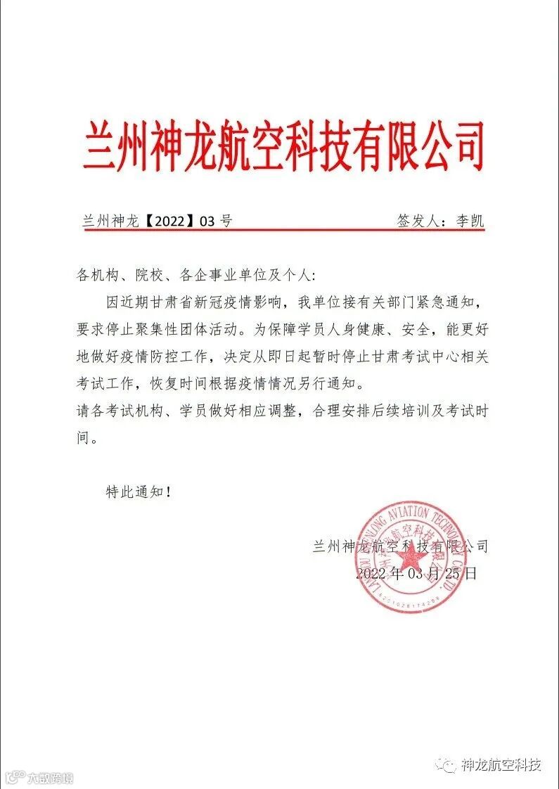 地做好疫情防控工作,决定从即日起暂时停止甘肃考试中心相关