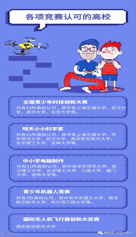 目前,全国部分高校招生及部分省市的小初高升学,已将参加各类国家性赛事,科技类特长生,作为学校降低门槛录取的一个重要考量标准。