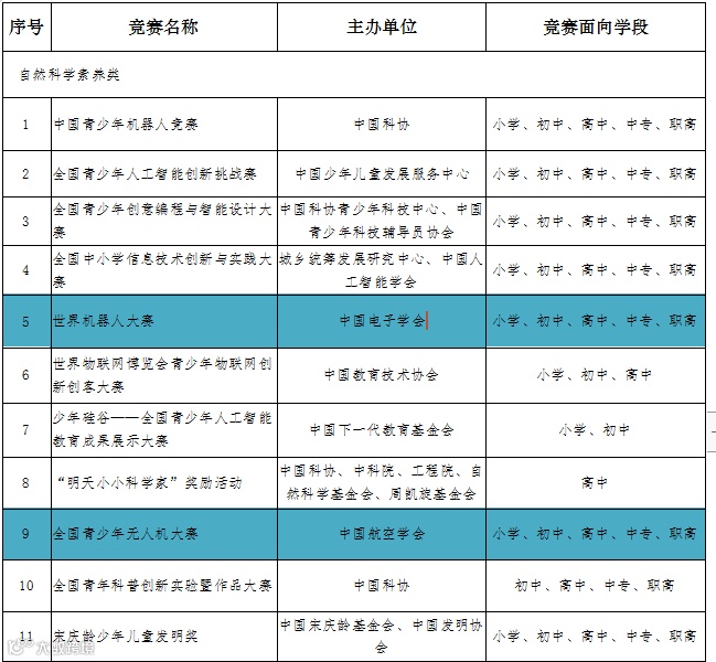 为确保全国青少年国家性赛事的规范性,权威性,避免不规范的赛事误导青少年及家长,国家教育部都会在其官方网站上公布当年度的面向中小学生全国性竞赛活动名单的公示(简称白名单赛事)。