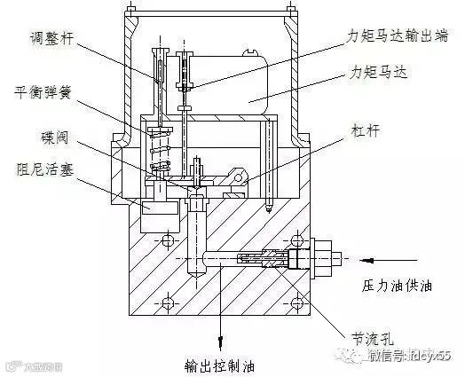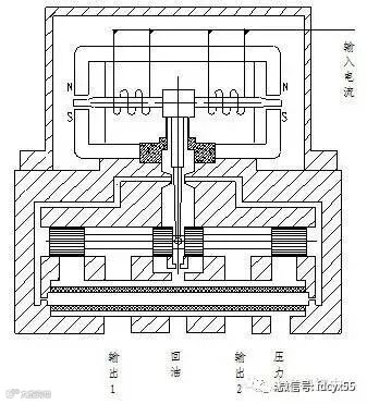 按照电液转换器的工作原理,它由力矩马达和液压放大两部分组成。力矩马达的作用是将“电”信号转换成机械力或机械位移信号,而液压放大部分则将机械信号进一步放大并以“油压”或“流量”的“液”信号形式输出。